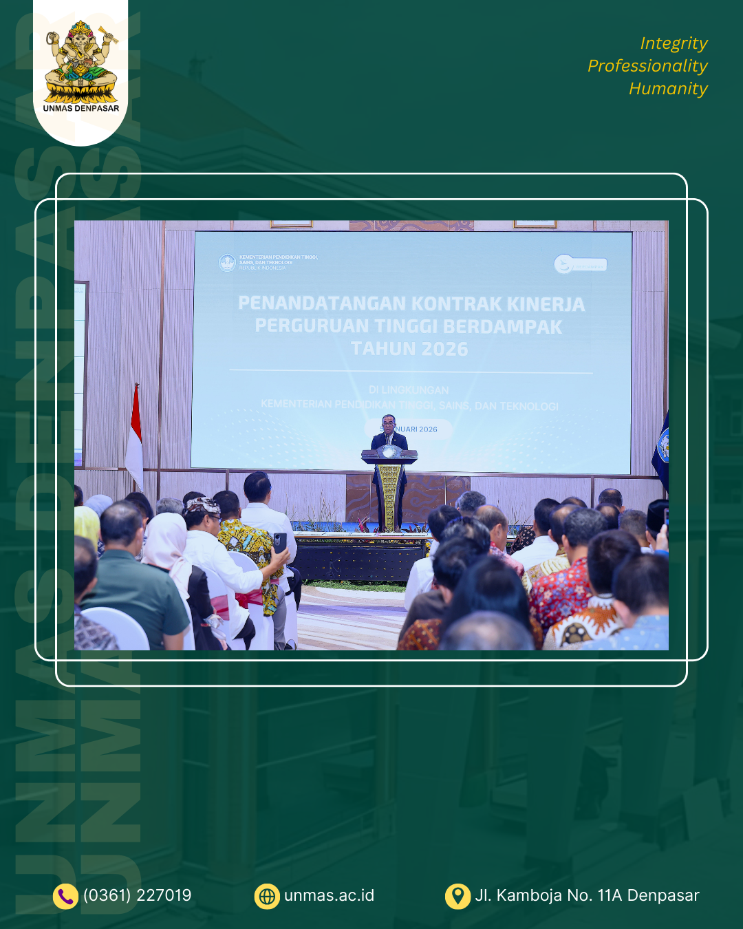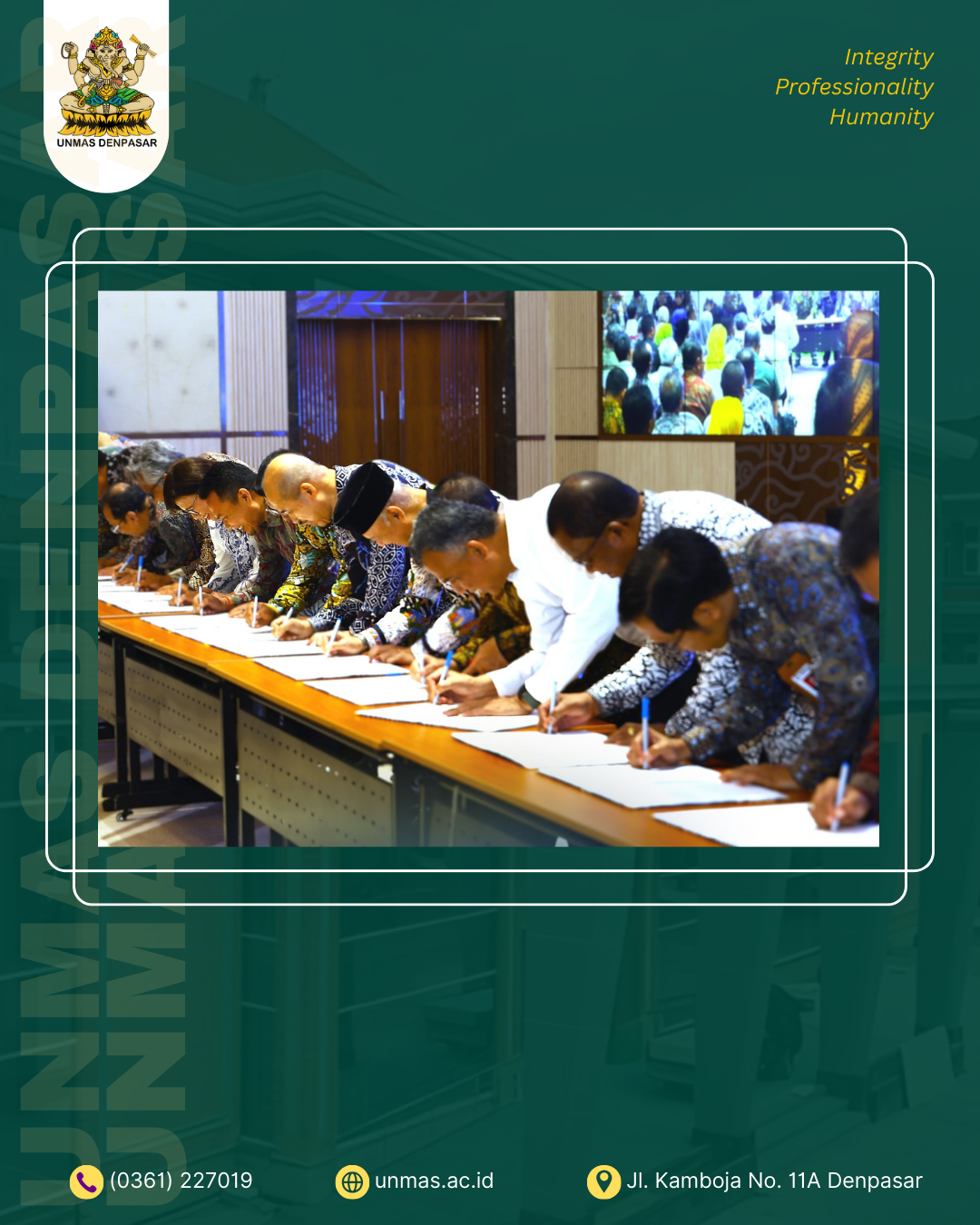 Bersama seluruh sivitas akademika, Unmas Denpasar melangkah mantap menuju kampus yang unggul, kolaboratif, dan benar-benar berdampak untuk Indonesia.